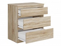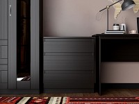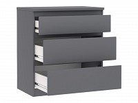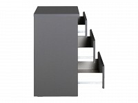Выдвижная конструкция открывает удобный доступ к любым вещам. Когда ящик открыт, можно быстро осмотреть содержимое и легко найти нужный предмет. Отсутствие лицевой фурнитуры делает комод безопаснее в эксплуатации и придает ему более лаконичный вид.