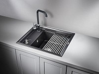 Поверхность не царапается, не выделяет вредные вещества и долго сохраняет первоначальный вид. Увеличенная глубина чаши, ролл-мат в комплекте и встроенный дозатор делают модель максимально удобной.