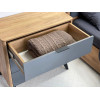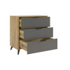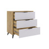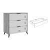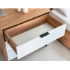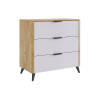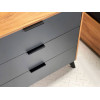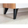 Особенность модели — закругленные внешние углы на ножках, крышке и торцах, которые делают ее более безопасной и комфортной. Древесный оттенок придает комоду уютные нотки, а высокие ножки облегчают уборку комнаты.