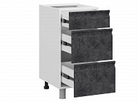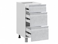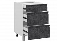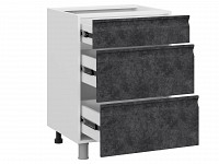 Модуль позволяет хранить в быстром доступе столовые приборы, небольшую кухонную утварь и продукты. Текстурные фасады с интегрированными ручками подчеркивают индивидуальность интерьера.