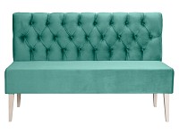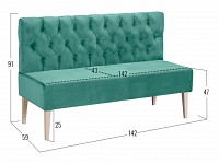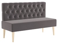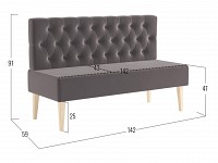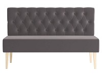 Каретная стяжка подчеркивает особый шарм модели и вносит нотку роскоши в атмосферу современной гостиной. Высокие деревянные ножки и отсутствие подлокотников создают ощущение визуальной легкости, поэтому диван отлично смотрится как в просторном, так и небольшом помещении.