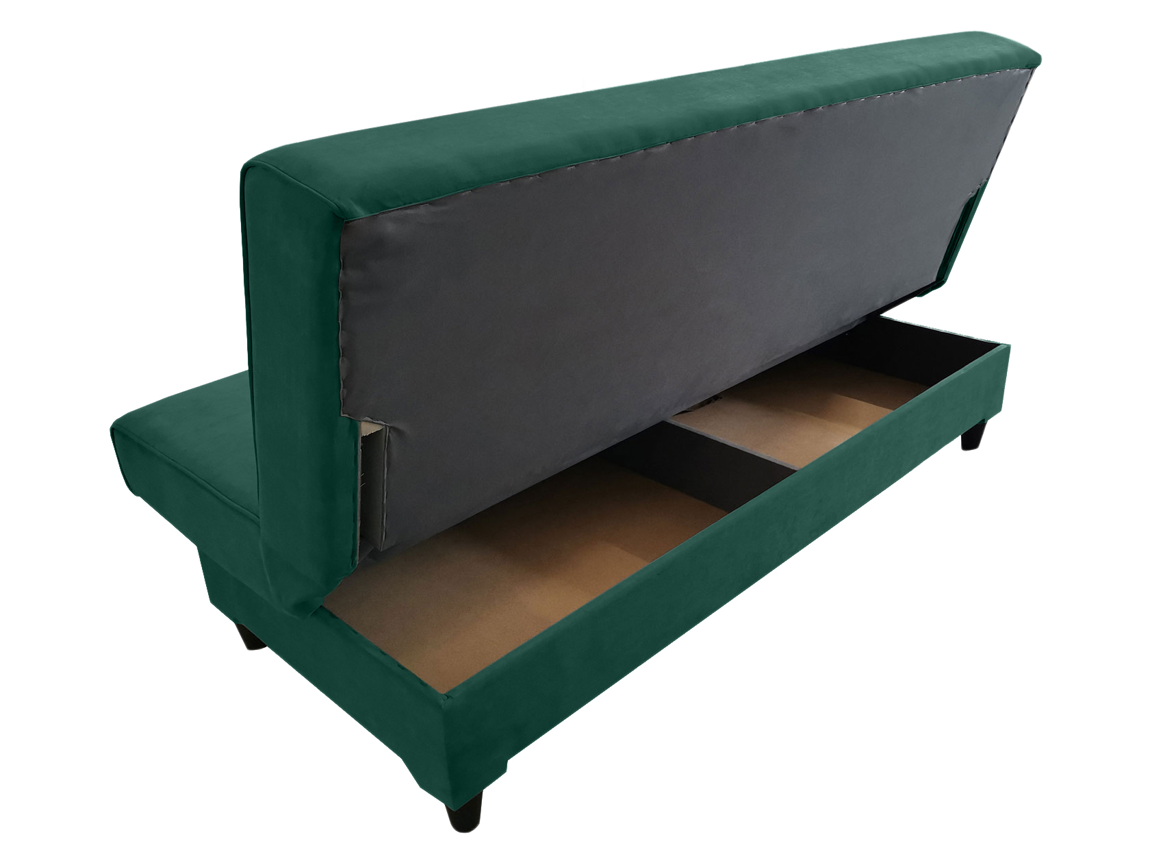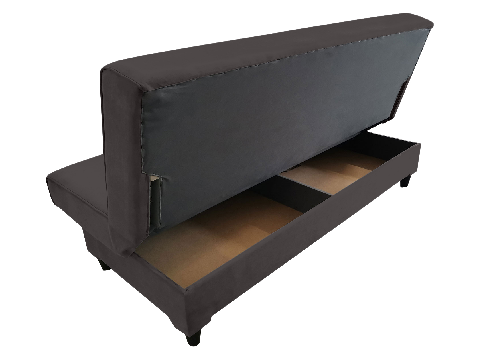 Компактный размер и отсутствие подлокотников позволяют расположить модель даже в очень в ограниченном пространстве. Надежный механизм трансформации быстро превращает диван в ровное место для сна. В основании предусмотрен бельевой ящик — актуальное дополнение для хранения в небольшой комнате.