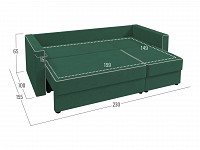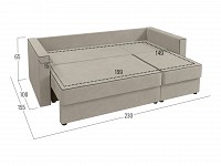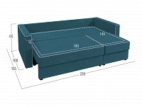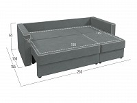 Модель легко раскладывается на время сна, превращаясь в просторную кровать. Сиденье состоит из двух секций, выдвинув одну из них, диван можно трансформировать в угловой. Расположение угла определяется во время сборки, поэтому модель отлично адаптируется для любой планировки.