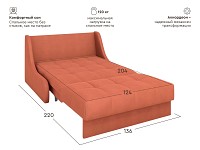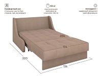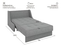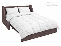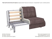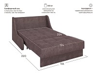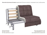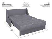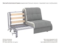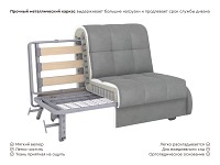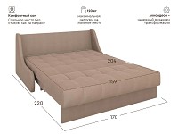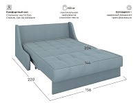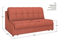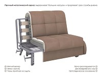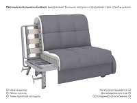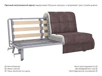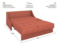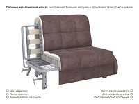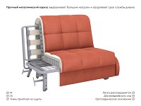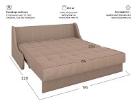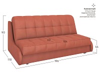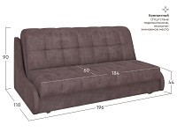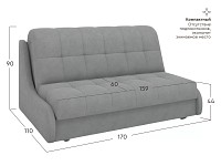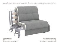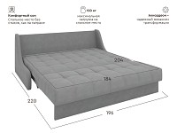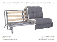 Узкие подлокотники позволяют интегрировать модель в небольшое пространство. Простой механизм быстро трансформирует диван в ровное спальное место. Прочный каркас выдерживает большие нагрузки и продлевает срок службы. Спинка обита основной тканью, поэтому диван можно расположить в любой точке комнаты.