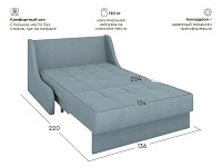 Серо-голубой, велюр / 144х204 см / Без ящика
