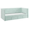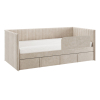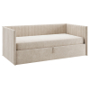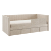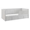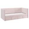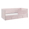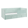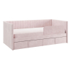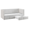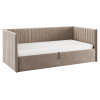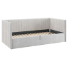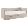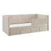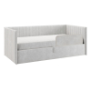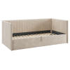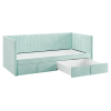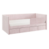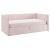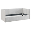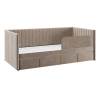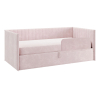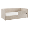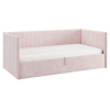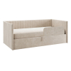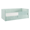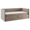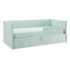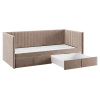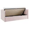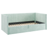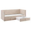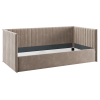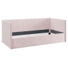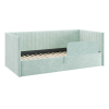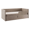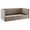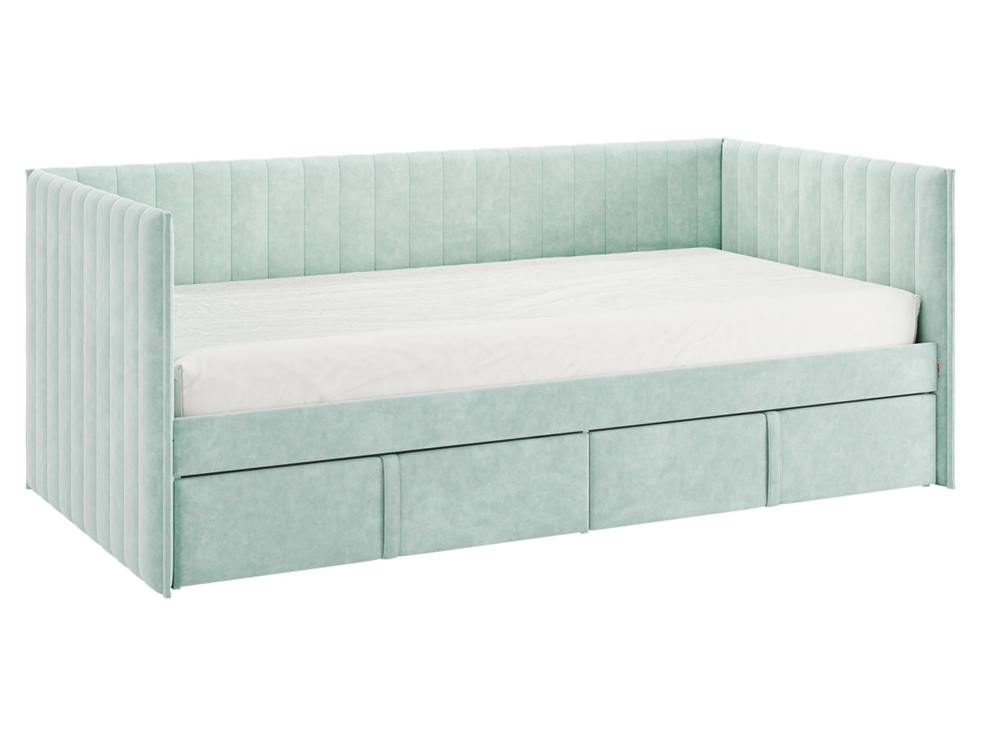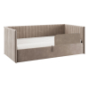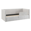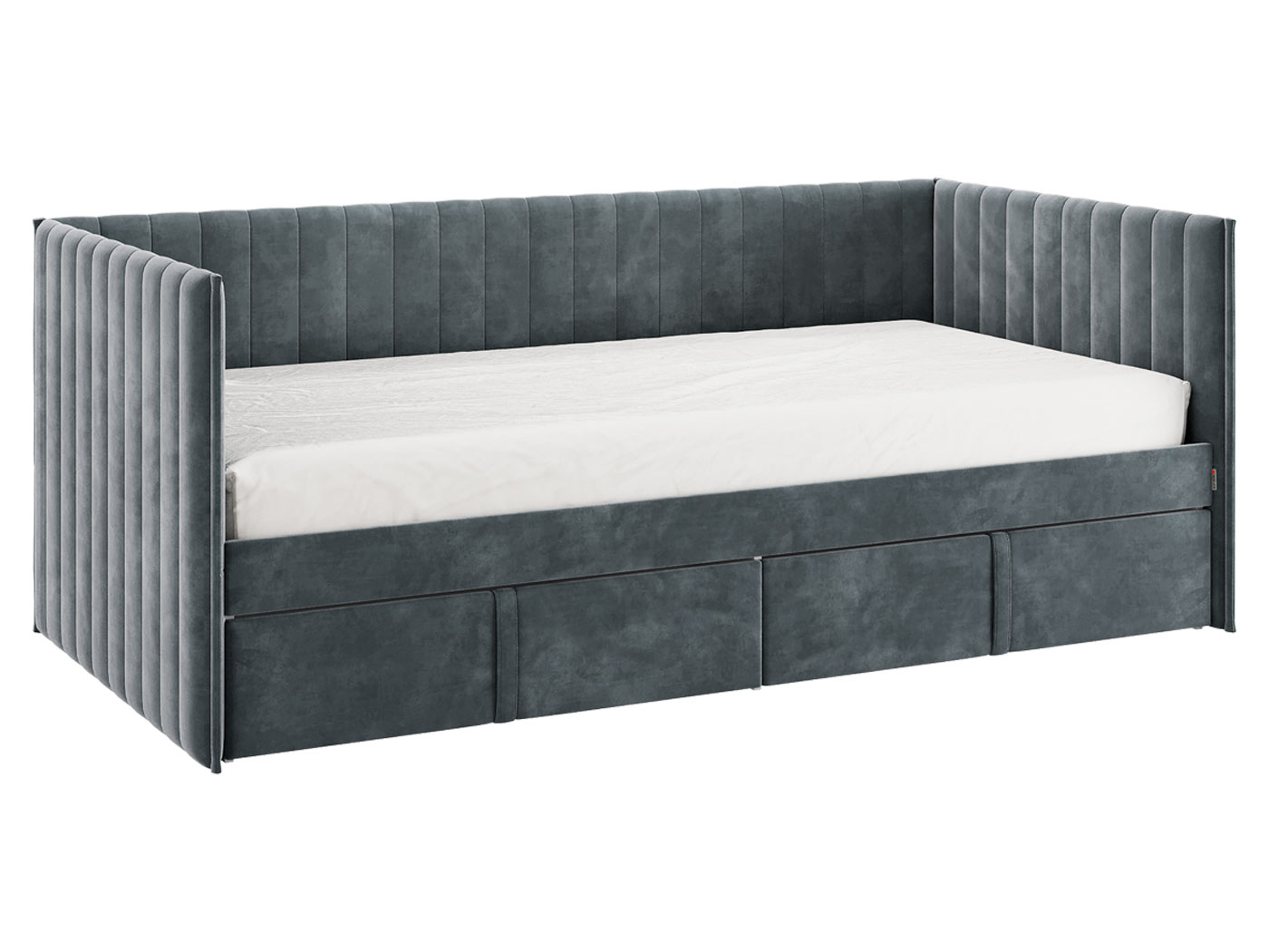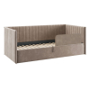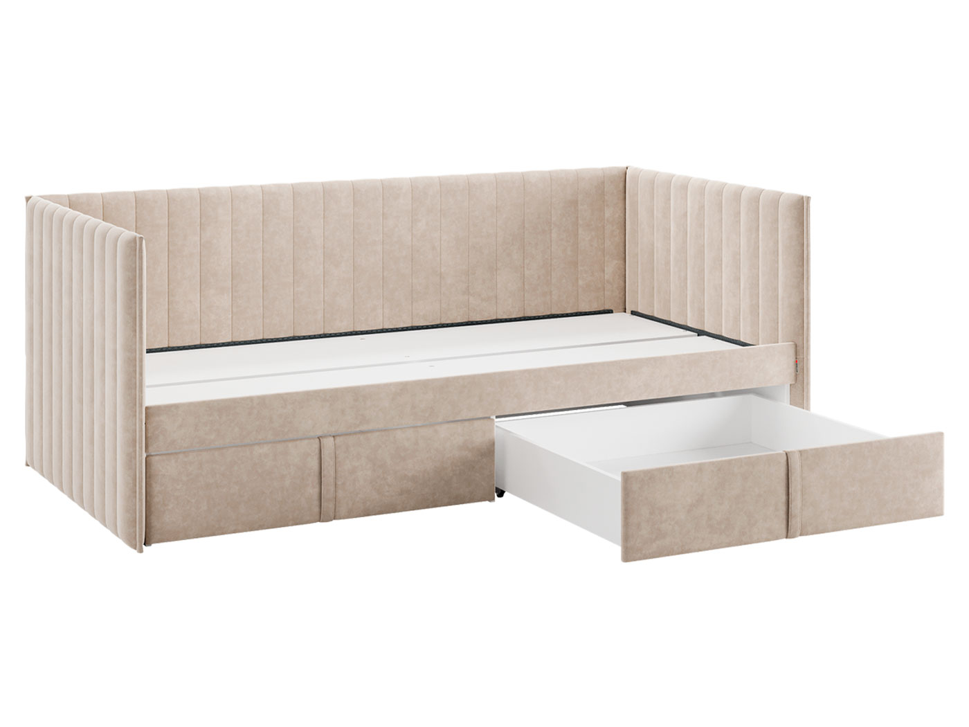 Современная модель поможет обустроить комфортный уголок для отдыха и сна. Кровать со всех сторон обита мягкой тканью, что снижает риск травмироваться об острые углы.
