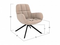 Высокая, слегка отклоненная назад спинка дополнена удобными подлокотниками. Особенность модели — вращающийся на 360 градусов механизм, с которым кресло становится еще функциональнее. Прочные опоры обеспечивают устойчивость и долговечность конструкции.
