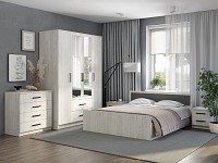 Для гардероба предусмотрен вместительный шкаф с полками, выдвижными ящиками и зеркалами, а для других вещей — комод и пара тумбочек. Сочетание различных фактур и натуральных оттенков обеспечит особую атмосферу комнаты и добавит акценты в интерьер.