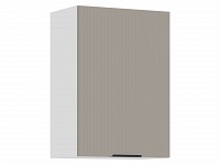 Внутри можно расставить посуду для сервировки, контейнеры со специями, а также разместить компактную кухонную технику. Узор с вертикальными линиями на фасадах гармонично сочетается с узкими стильными ручками.