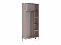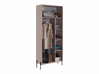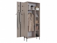 Открытая вешалка позаботится о рациональном размещении верхней одежды. Антресольное отделение подойдет для несезонных вещей, а штанга и полки организуют хранение прочих предметов гардероба. Вертикальная фрезеровка под дерево создает уютный акцент интерьера.