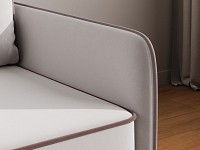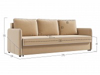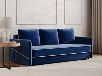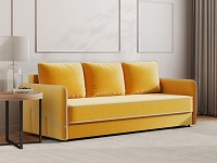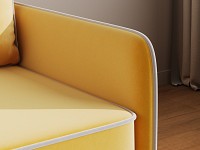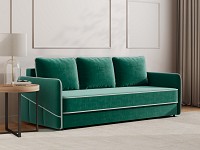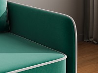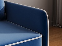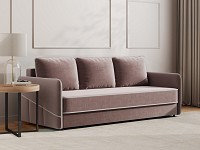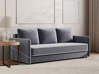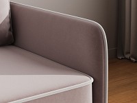 Приятная на ощупь обивка легко чистится от загрязнений, а контрастный кант подчеркивает лаконичный силуэт. Узкие подлокотники позволяют сэкономить пространство комнаты. Диван со всех сторон обит основной тканью, поэтому его можно установить как вдоль стены, так и использовать для зонирования гостиной.