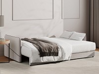 Модель оснащена надежным раскладным механизмом и быстро трансформируется в удобную двуспальную кровать, которая подходит для ежедневного сна. Просторный бельевой короб создает дополнительное место для хранения постельных принадлежностей, сезонных вещей или теплых пледов.
