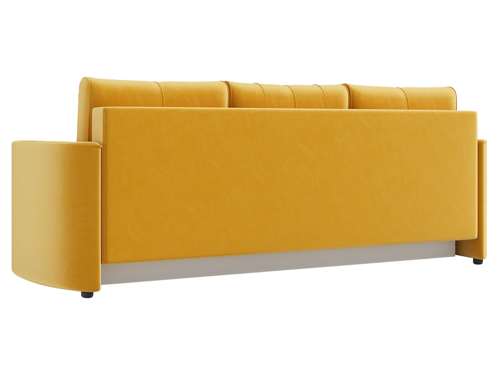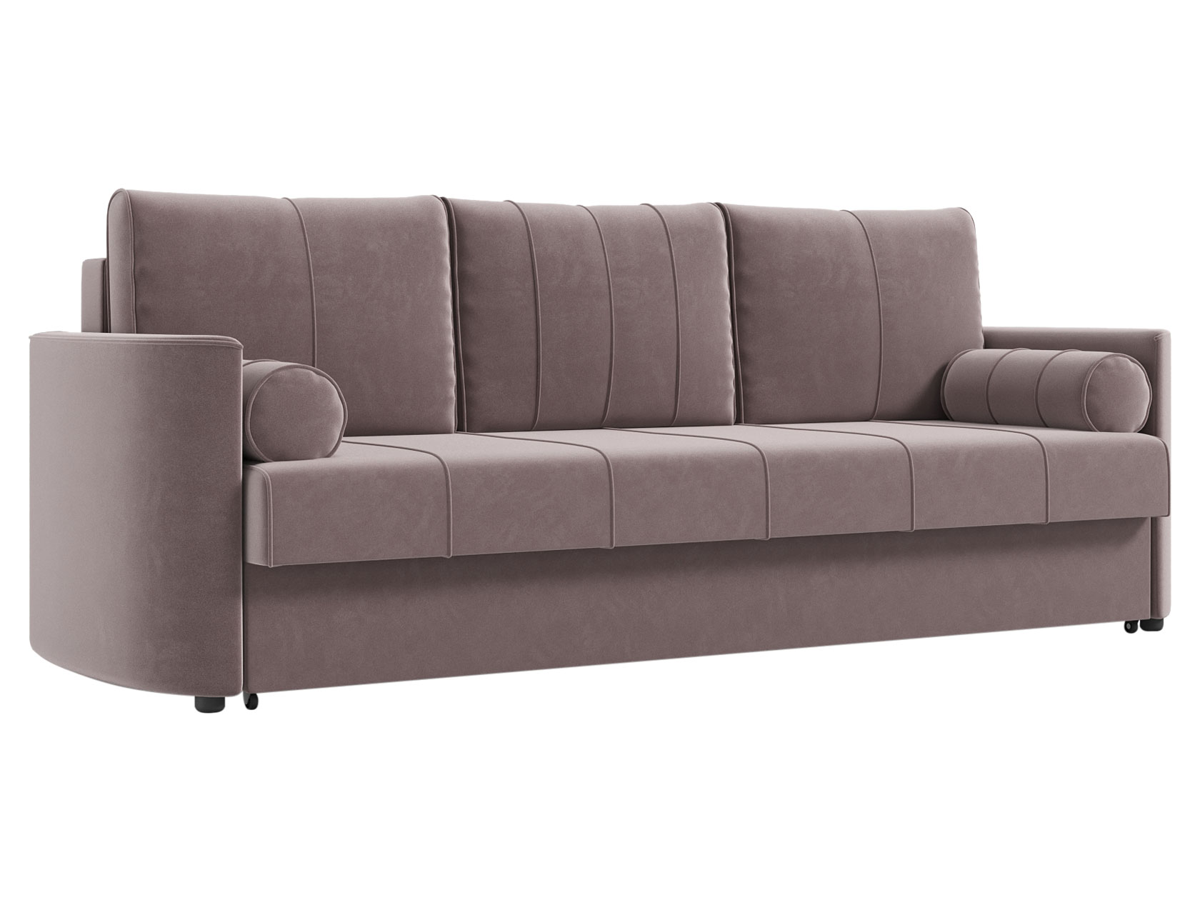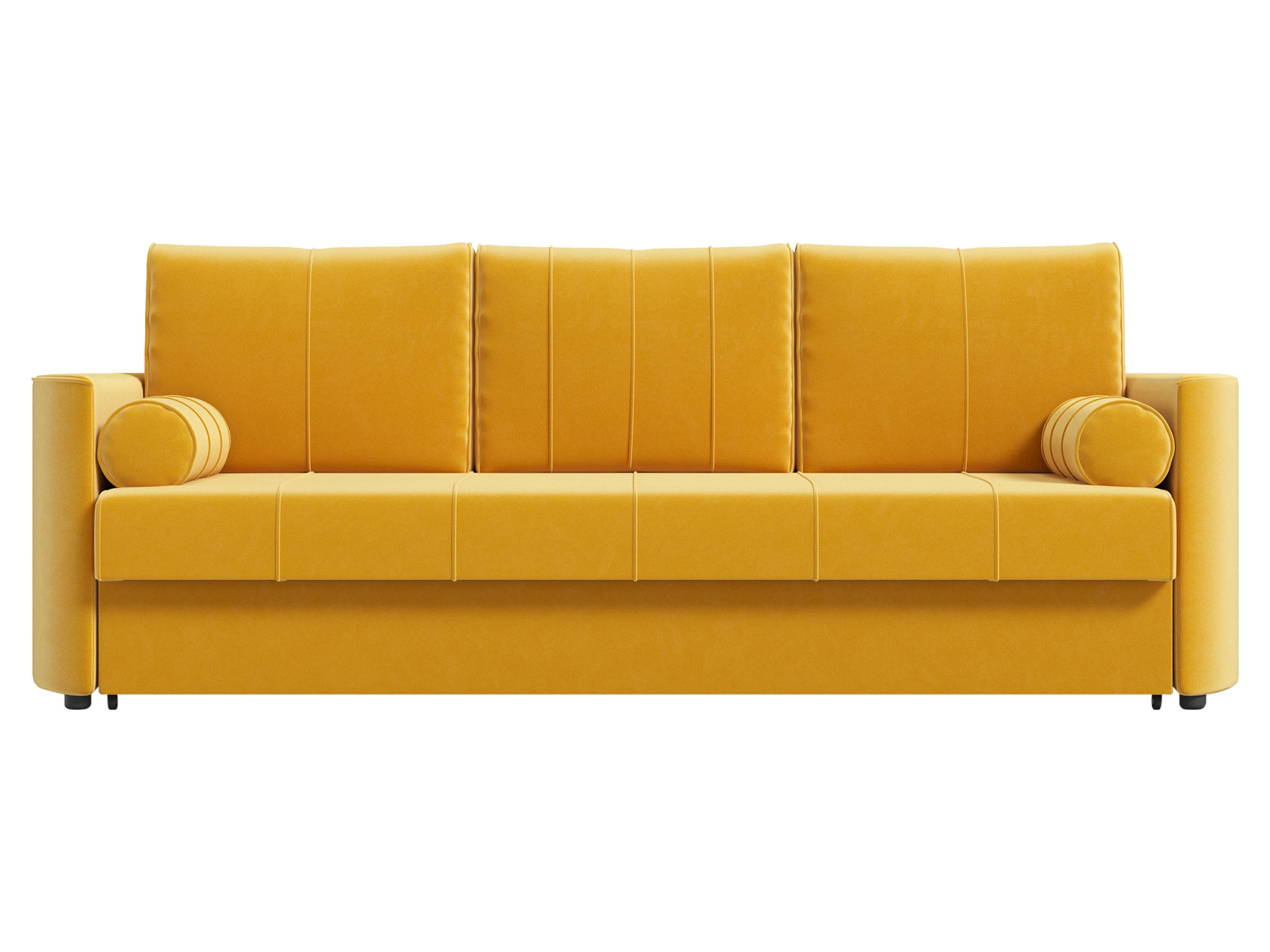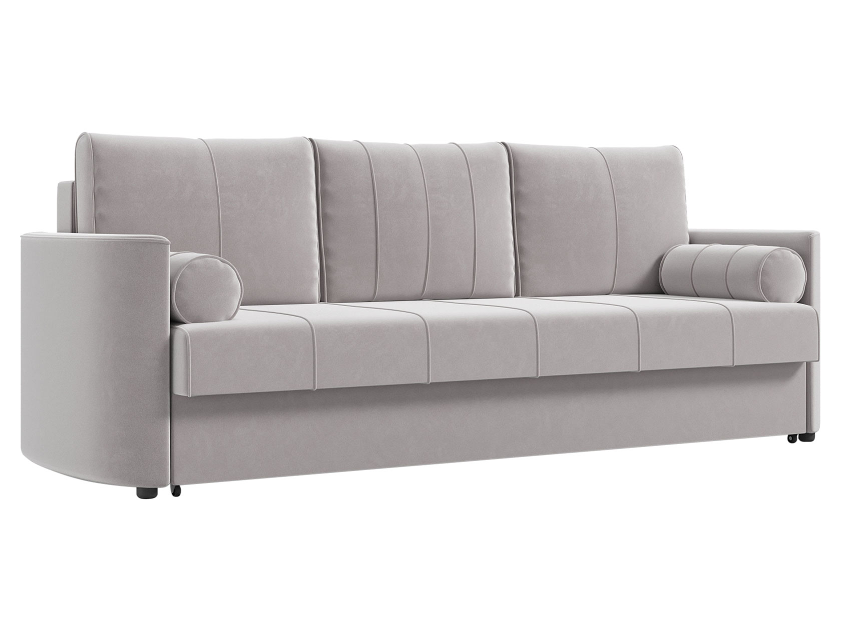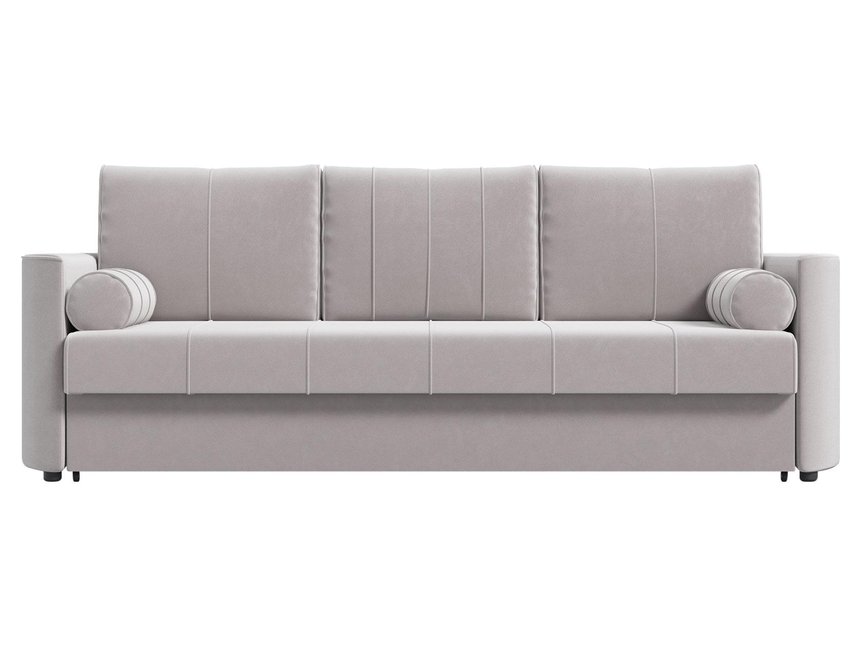 Тканевая обивка со всех сторон позволяет установить модель в любой части комнаты. Удобный механизм трансформации легко превращает диван в спальное место. Под сиденьем расположен бельевой короб. Это решение помогает рационально организовать пространство и хранить постельные принадлежности. Декоративная строчка в виде ровных линий на обивке и подушках гармонично сочетается с закругленными подлокотниками, подчеркивая аккуратный облик модели.