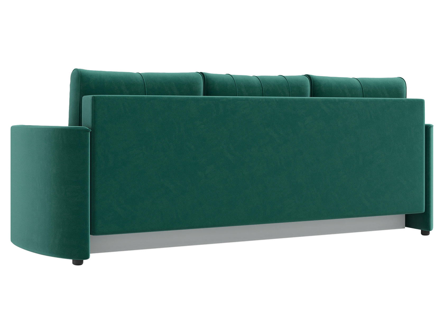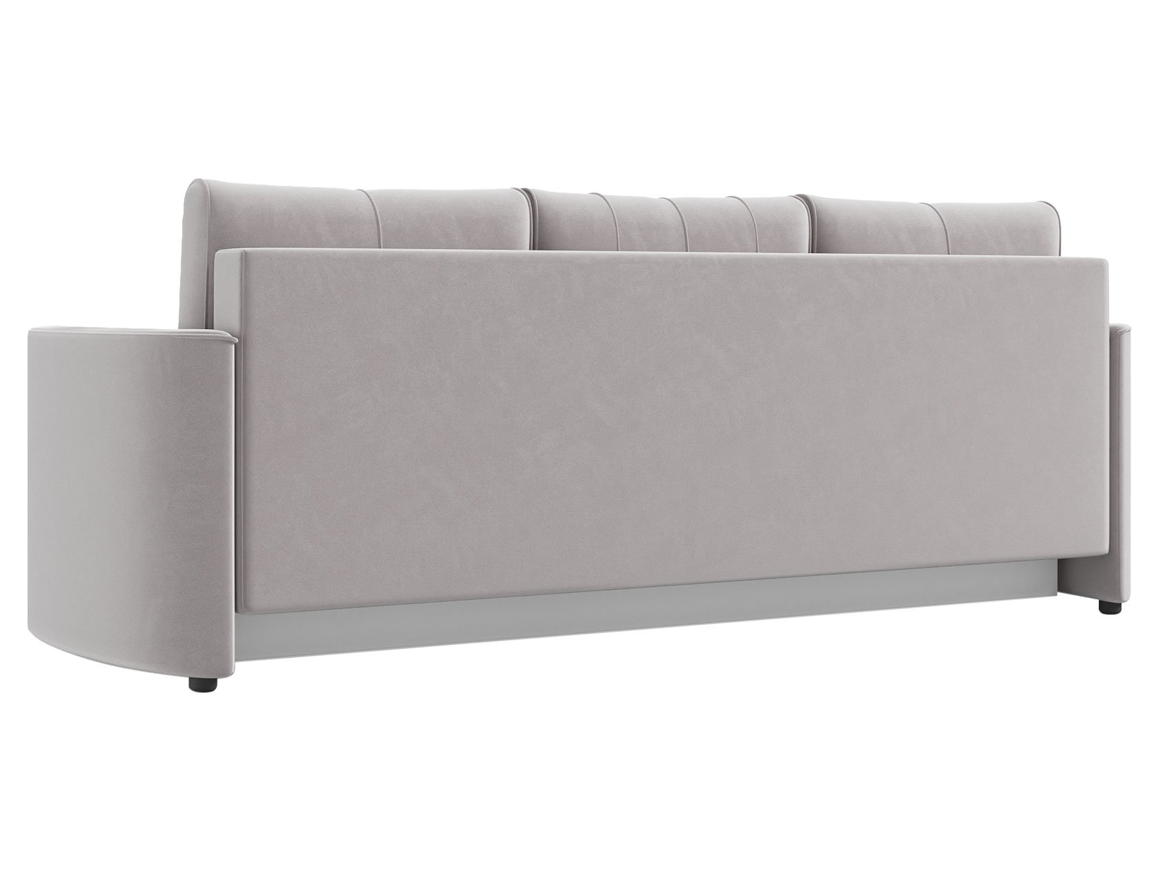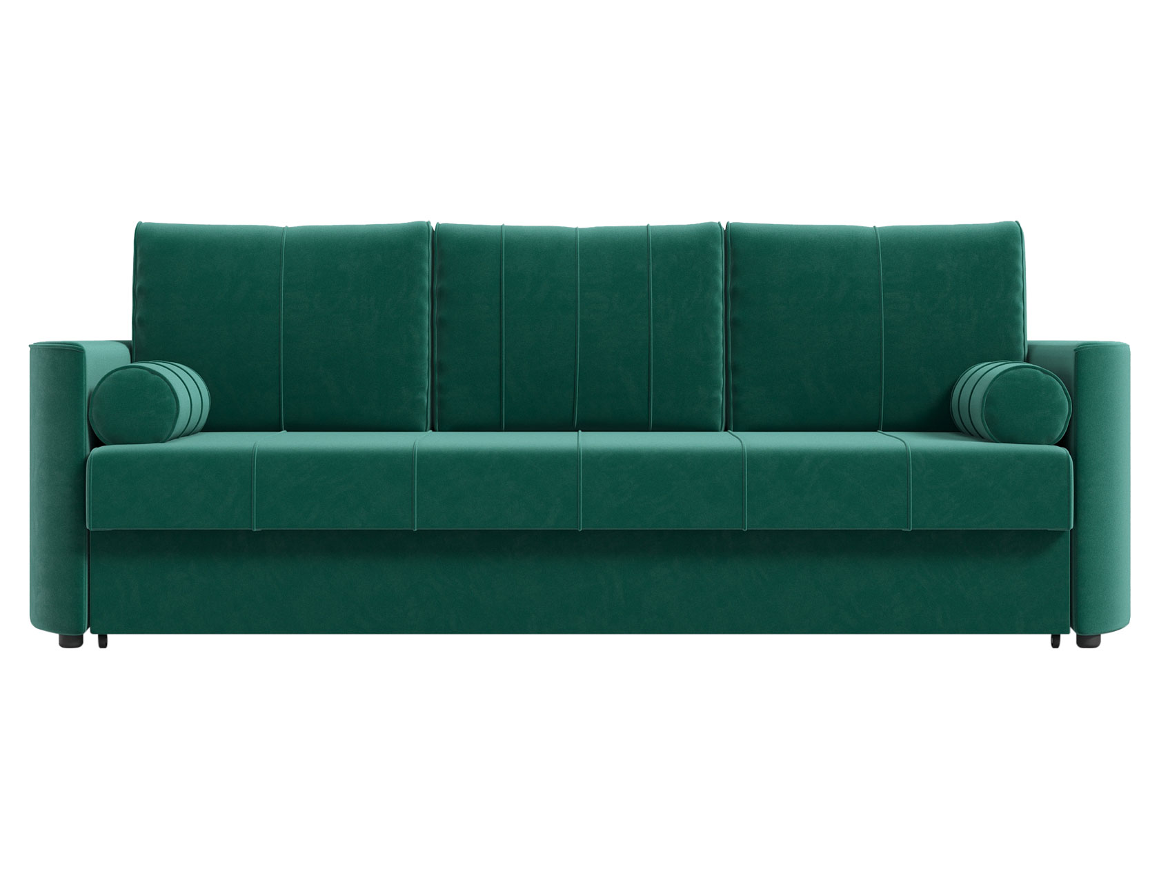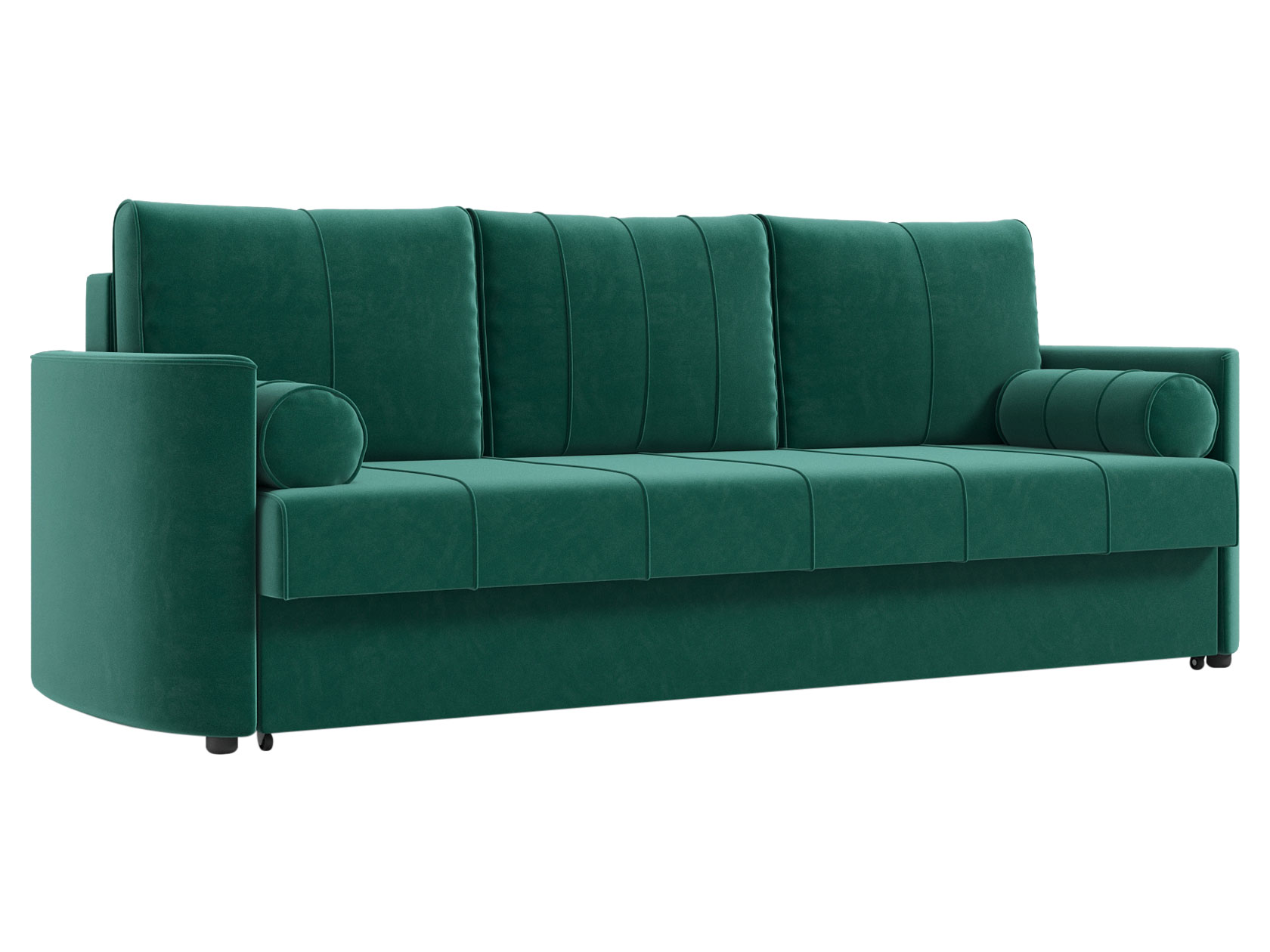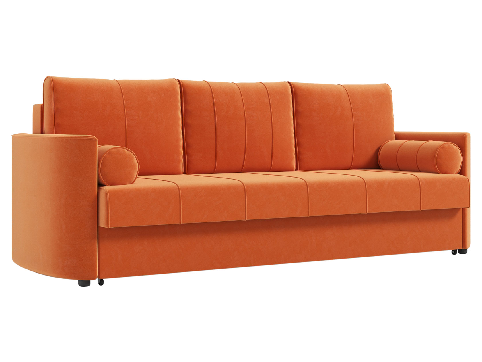 Тканевая обивка со всех сторон позволяет установить модель в любой части комнаты. Удобный механизм трансформации легко превращает диван в спальное место. Под сиденьем расположен бельевой короб. Это решение помогает рационально организовать пространство и хранить постельные принадлежности. Декоративная строчка в виде ровных линий на обивке и подушках гармонично сочетается с закругленными подлокотниками, подчеркивая аккуратный облик модели.