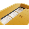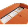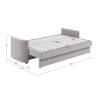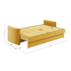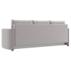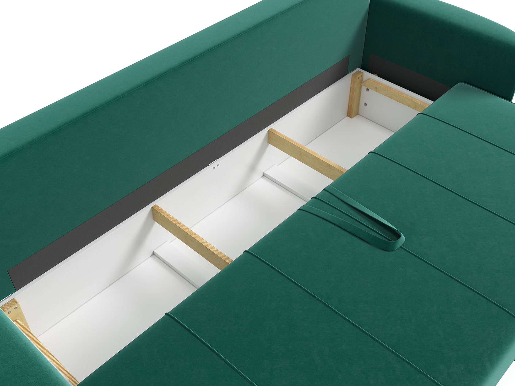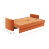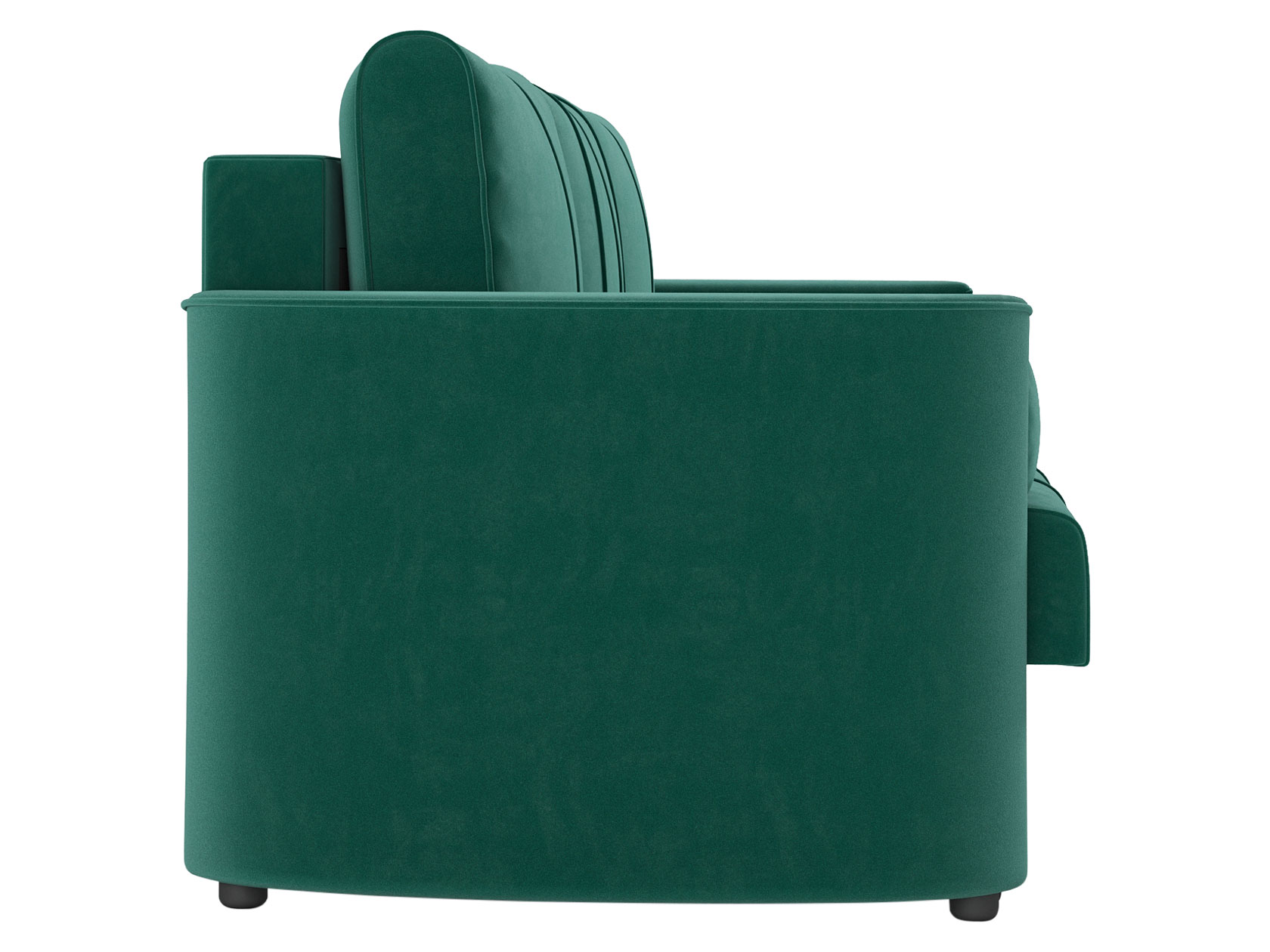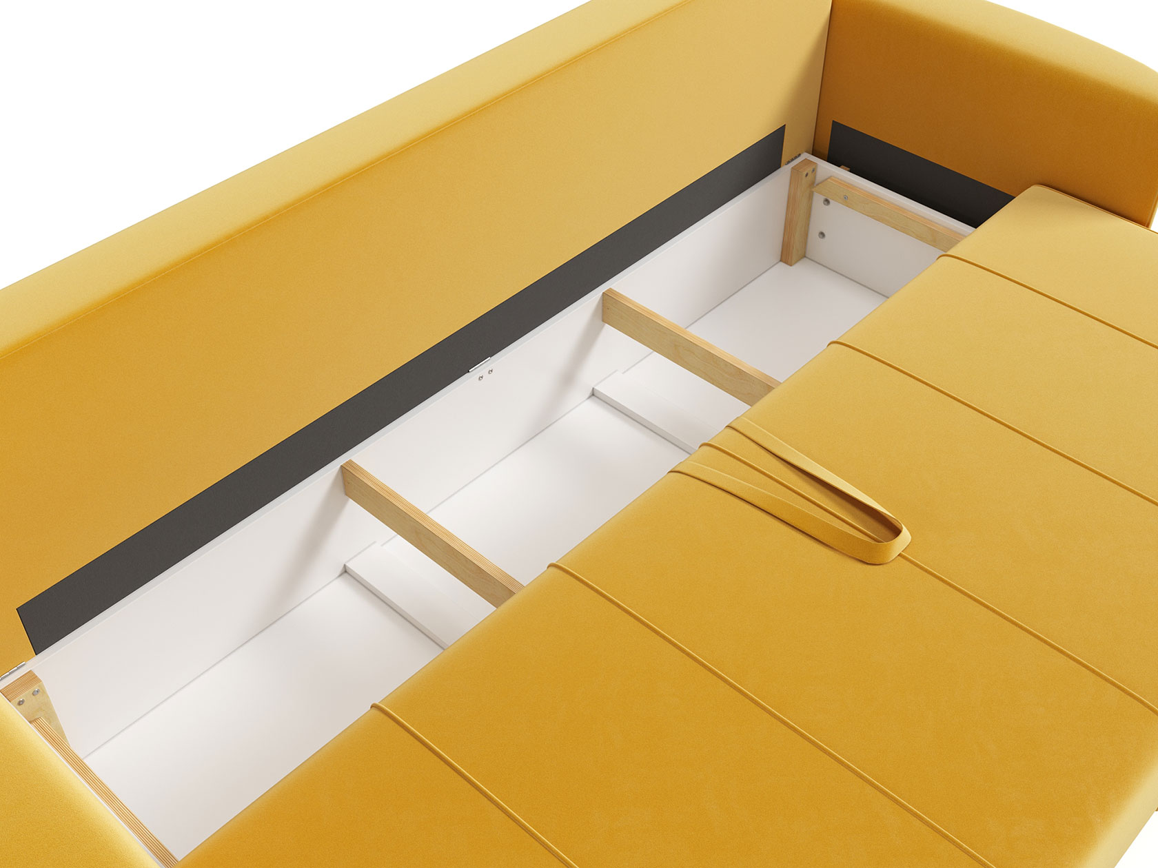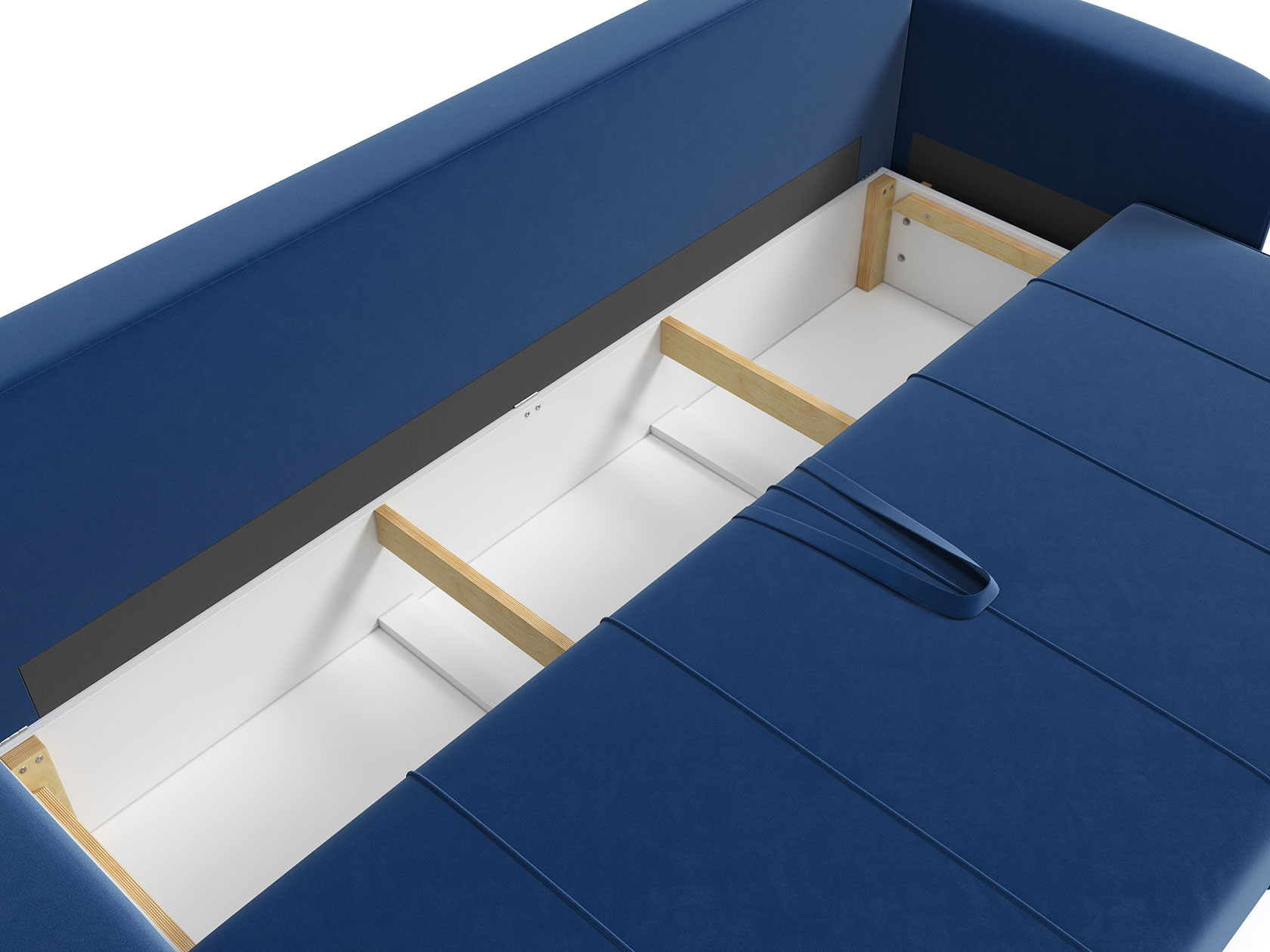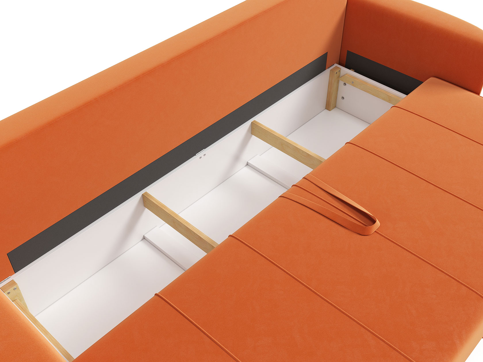 Тканевая обивка со всех сторон позволяет установить модель в любой части комнаты. Удобный механизм трансформации легко превращает диван в спальное место. Под сиденьем расположен бельевой короб. Это решение помогает рационально организовать пространство и хранить постельные принадлежности. Декоративная строчка в виде ровных линий на обивке и подушках гармонично сочетается с закругленными подлокотниками, подчеркивая аккуратный облик модели.
