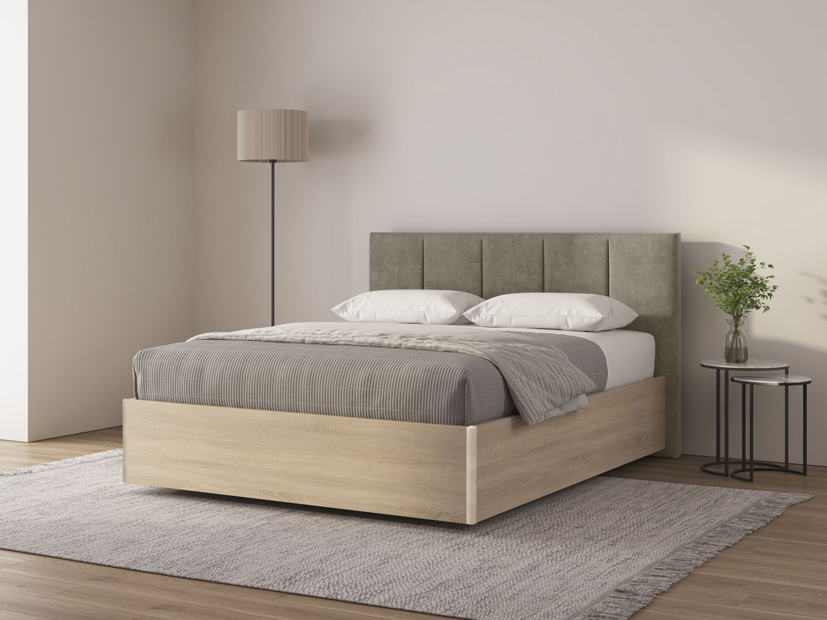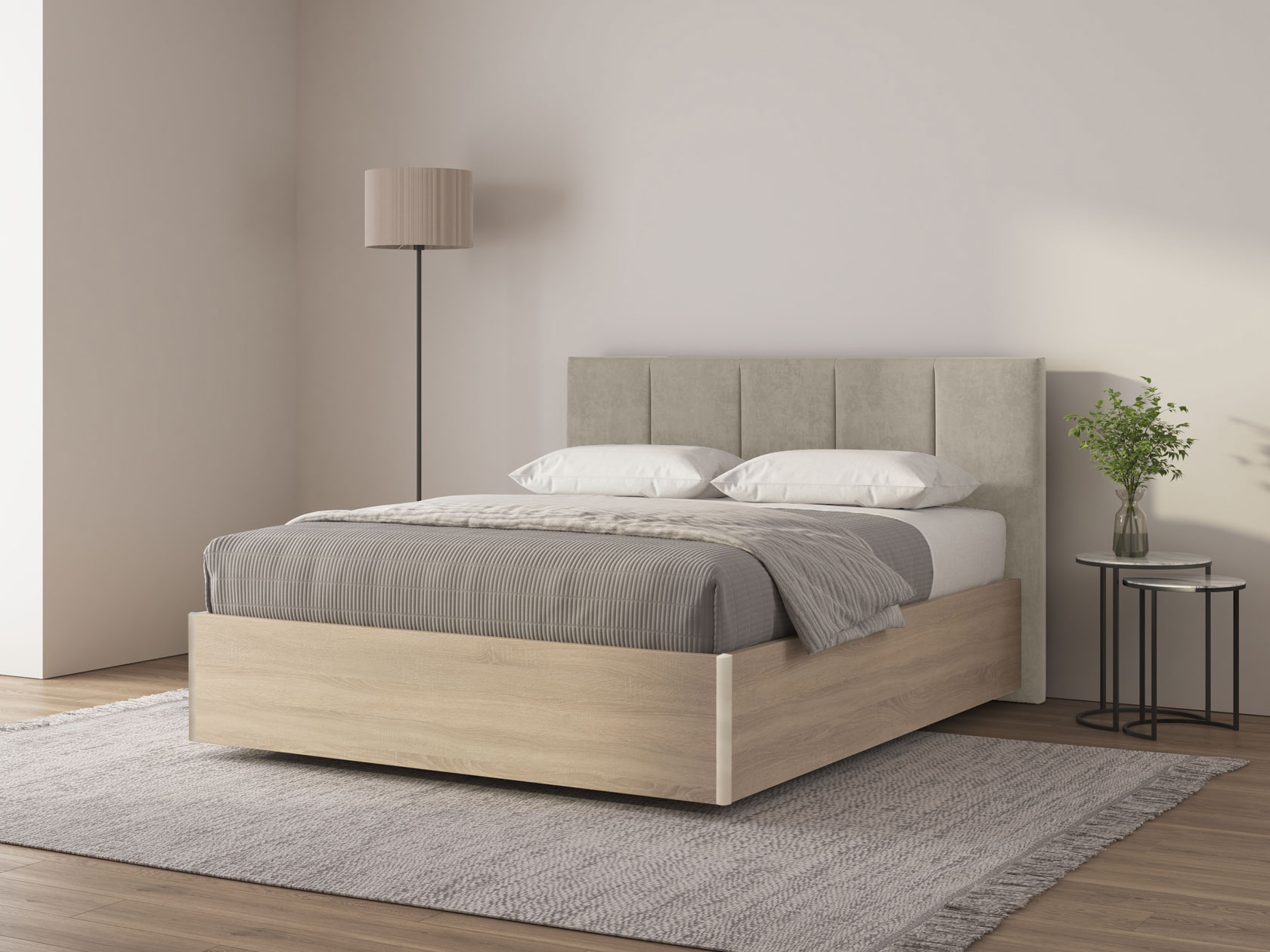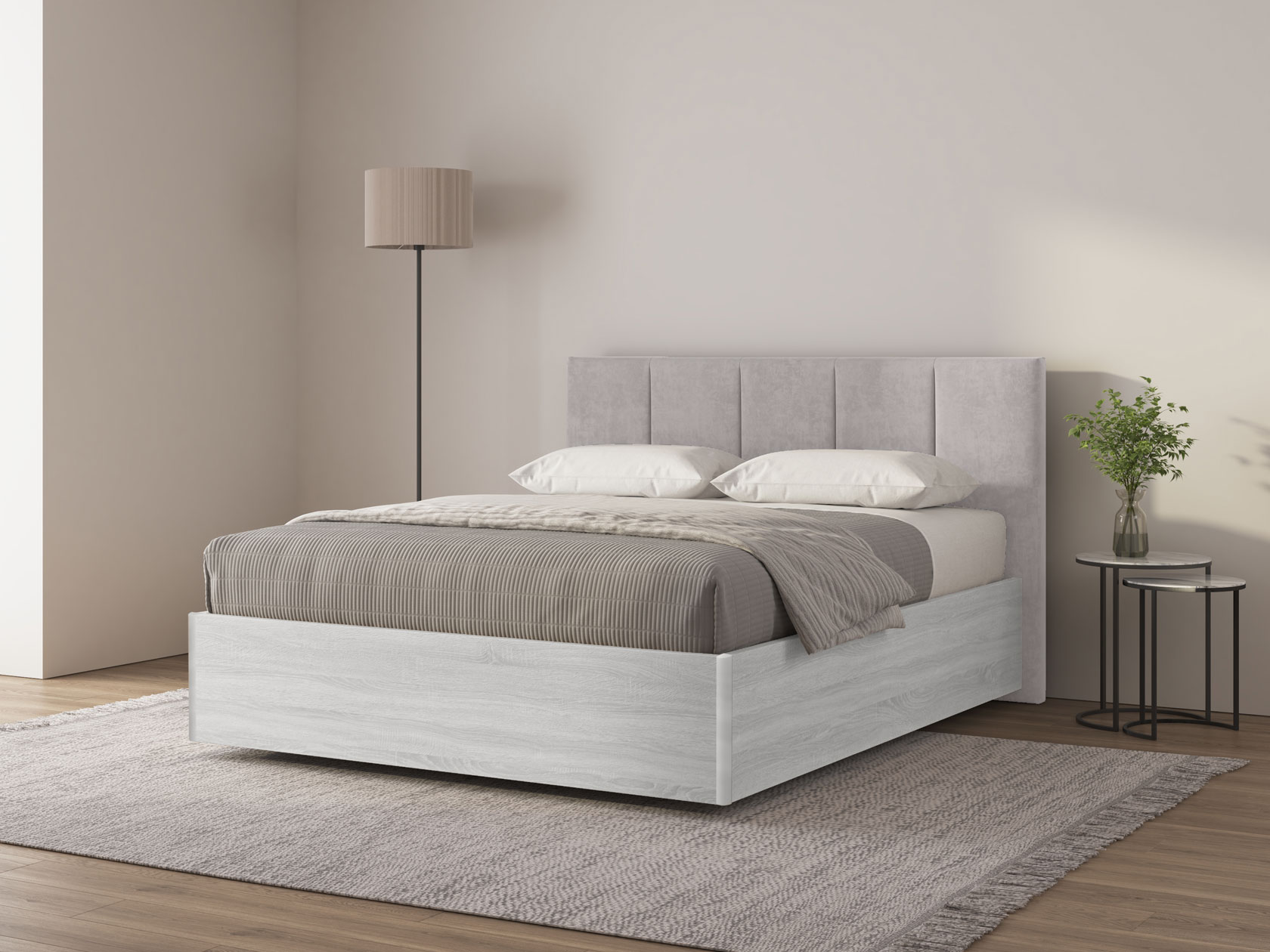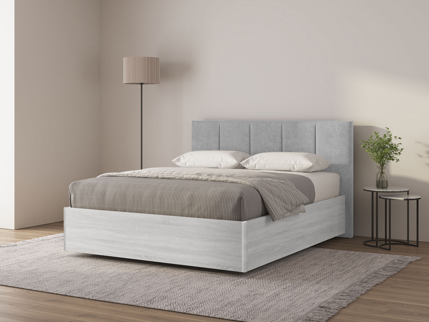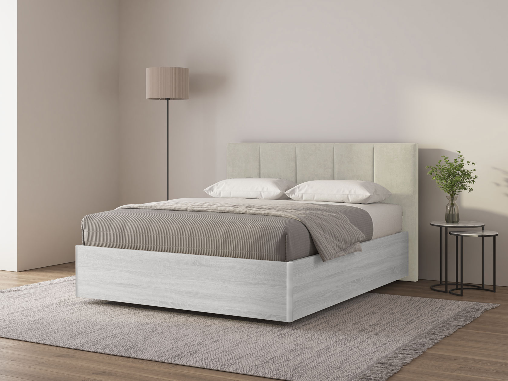 Кремово-серый, велюр / Ясень Анкор светлый / 160х200 см