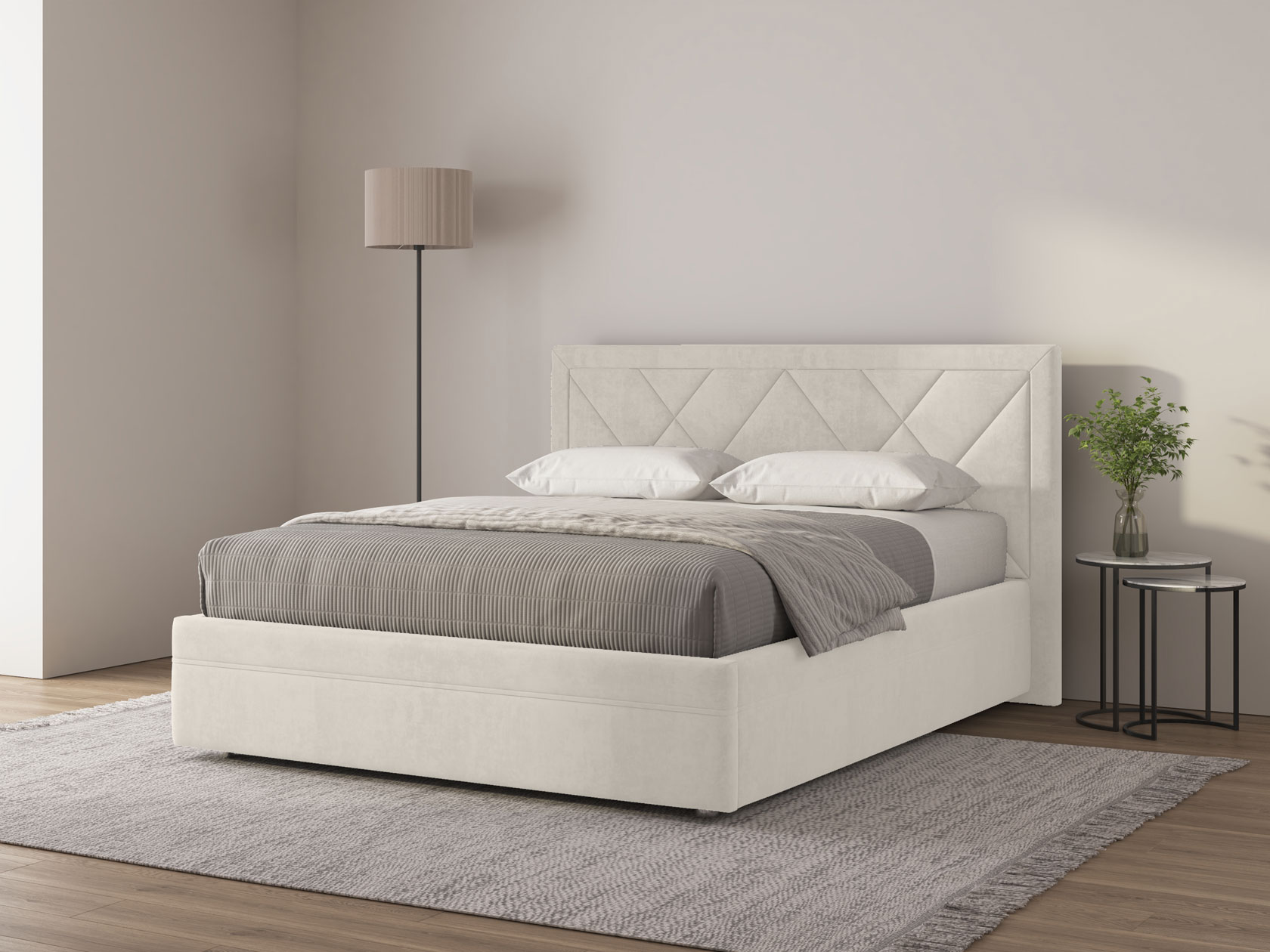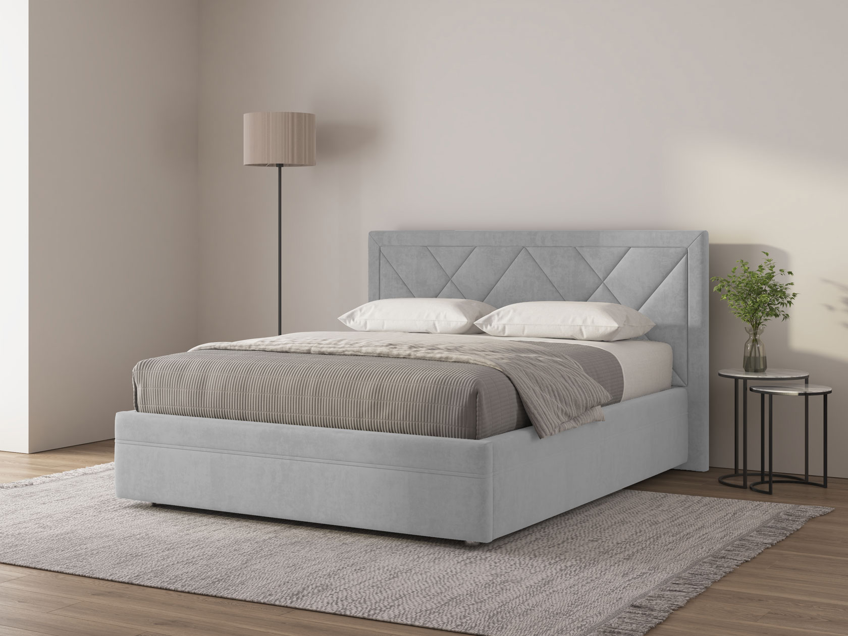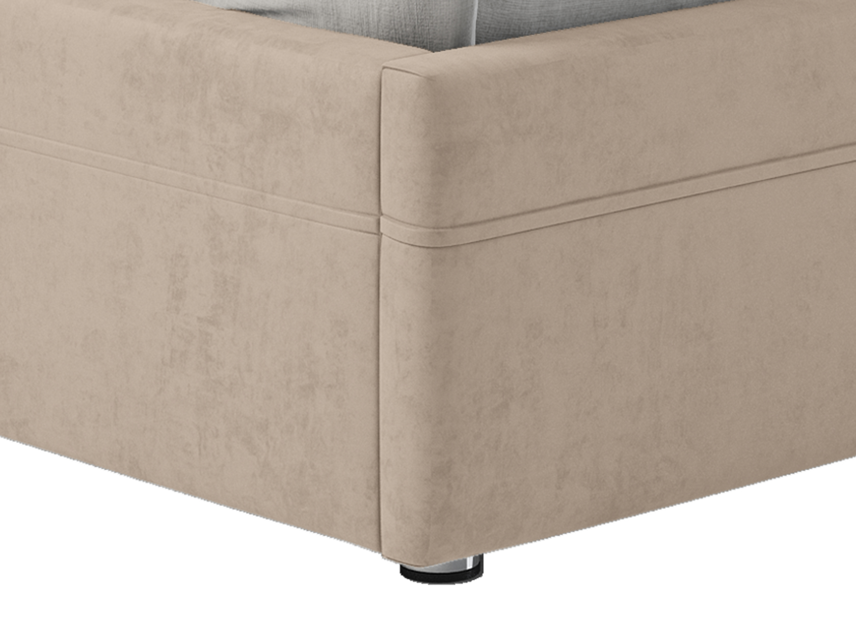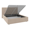 Благодаря мягкой обивке модель смотрится очень уютно и располагает к отдыху, а декоративная строчка выступает интересным акцентом изголовья. Основание с гибкими ламелями легко поднимается, открывая доступ к ящику для белья. Внутри удобно хранить постельные принадлежности, теплые пледы или сезонные вещи.