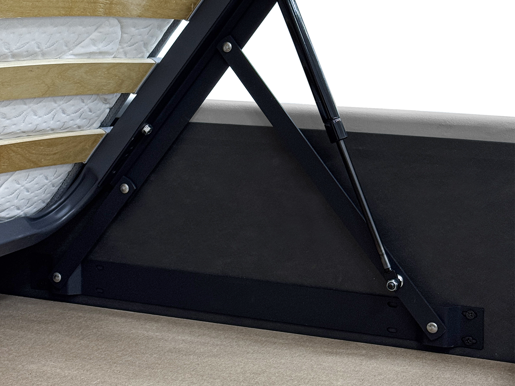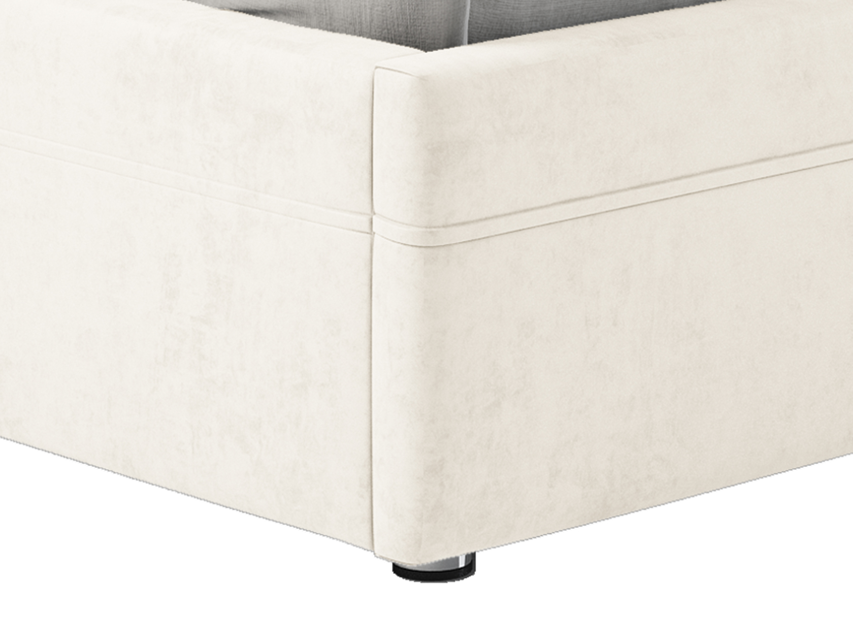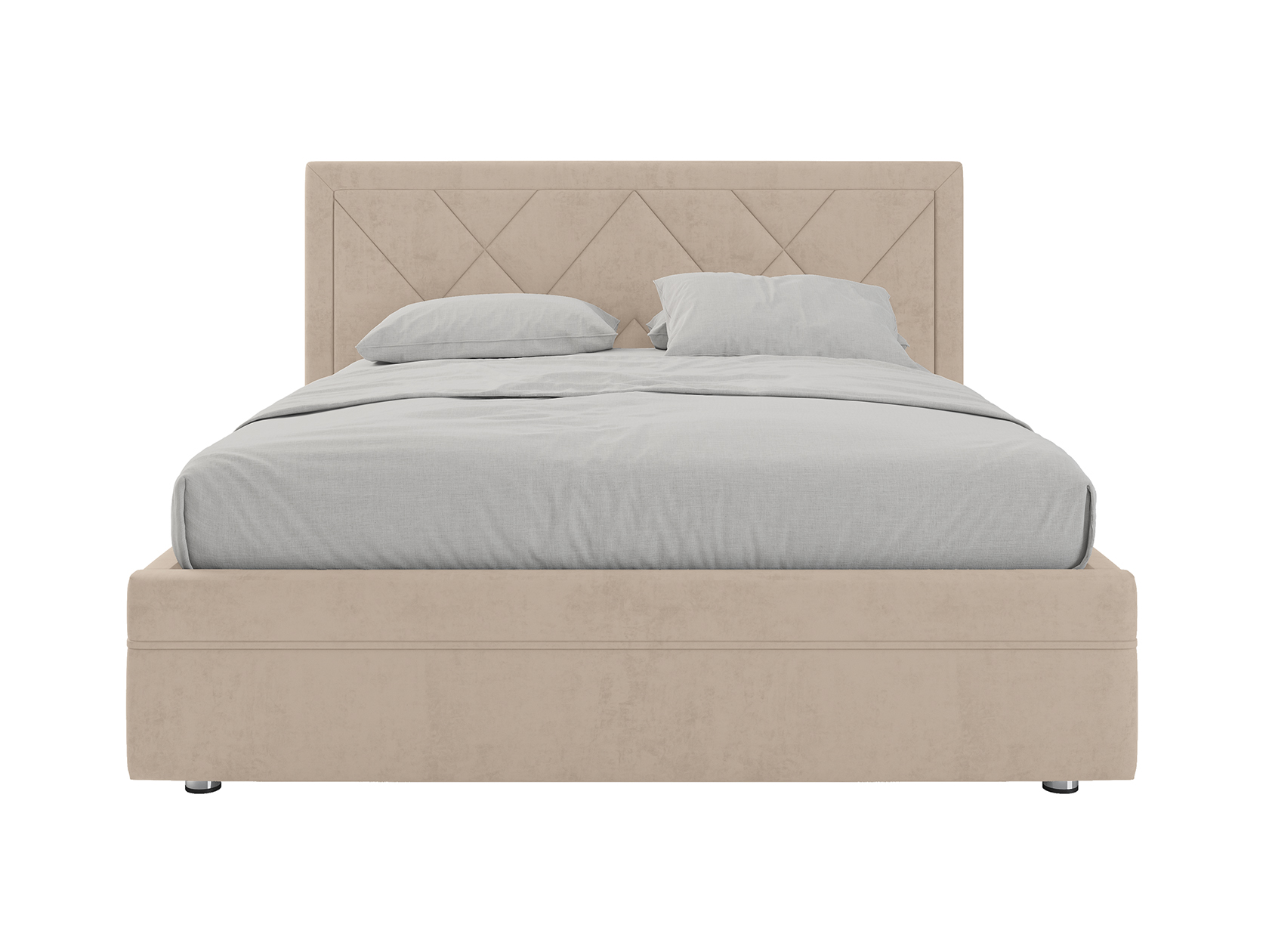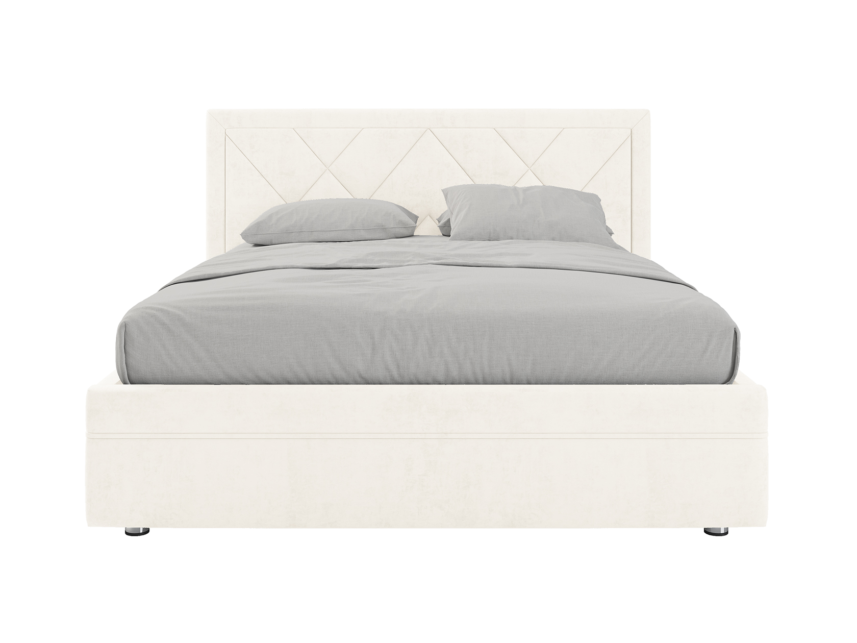 Благодаря мягкой обивке модель смотрится очень уютно и располагает к отдыху, а декоративная строчка выступает интересным акцентом изголовья. Основание с гибкими ламелями легко поднимается, открывая доступ к ящику для белья. Внутри удобно хранить постельные принадлежности, теплые пледы или сезонные вещи.
